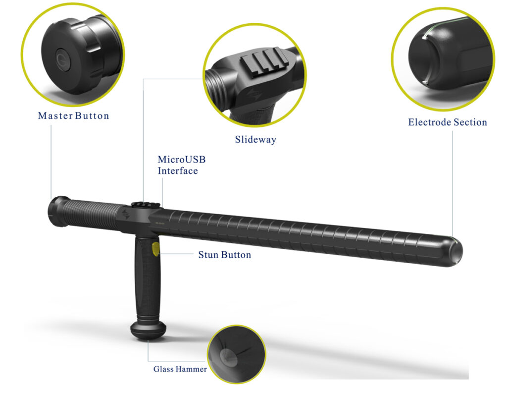 Bastonul de control electronic de tip SS400 T este un nou tip de echipament de aplicare a legii bazat pe tacticile poliției, cu un design unic și nou și o funcție de șoc electric de înaltă tensiune, potrivit pentru o varietate de situații. Întrerupătorul de alimentare este proiectat la capătul din spate cu un indicator luminos, iar mânerul cu buton de șoc electric, care este ușor de utilizat. Produsul are încorporată o baterie reîncărcabilă.